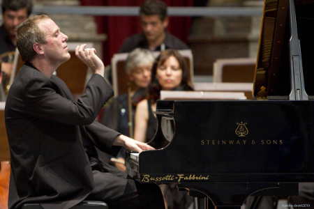 Lo scorso sabato 5 agosto 2017, a Castagno d’Andrea, la splendido piccolo paesello ai piedi del Monte Falterona, ha avuto inizio la XXXIX° Edizione dell’ Estate Musicale, ma come sovente accade, all’ultimo momento sono giunte alcune notizie non certo gradevoli per il caro don Bruno Brezzi che tanto si adopra per queste pagine musicali all’interno della sua chiesetta affrescata da Pietro Annigoni, poiché il pianista Andrea Turrini, per una improvvisa indisposizione non ha potuto raggiungere Castagno. Quando poi è arrivato da Macerata il violinista Aldo Campagnari, sembrava che la serata dovesse saltare, ma il bravissimo violinista, non si perso d’animo e con il gaudio di don Bruno, Campagnari dimostrando una grande sensibilità ed una alta professionalità, con il suo magico violino ha eseguito mirabilmente alcuni brani di J. S. Bach. Come abbiamo sempre scritto non siamo critici musicali, solamente appassionati, ma l’esibizione di Aldo Campagnari ci è sembrata ad altissimo livello e gli applausi scroscianti, davvero interminabili (è stato richiamato davanti all’Altare ben cinque volte !!), è stato il segno inequivocabile che Campagnari, non solo ha salvato la serata, ma la incredibilmente ingentilita. Bravo, bravo davvero, con tutti i nostri complimenti. Ma siccome i guai non vengono mai da soli, ecco la notizia che mercoledi prossimo 8 agosto 2017, doveva esibirsi il grande pianista Alexander Lonquich (musiche di R. Schumann), ma è stato vittima di un incidente con la frattura di un piede. Quindi mercoledi niente concerto, ma don Bruno ci ha detto – e lo divulghiamo molto volentieri – che lo stesso Lonquich (che si esibisca a Castagno da tanti anni) gli ha promesso che entro agosto verrà a Castagno d’Andrea, anche con l’arto ingessato, per seguitare questa lunga catena di amicizia prima e musicale poi. Consigliamo di seguire il sito: www.estatemusicalecastagno.it. Quindi per tutti gli appassionati e gli amici di Castagno, il programma (facendo le dovute c…..!), resta invariato e il prossimo concerto sarà in programma venerdi prossimo 11 agosto 2017 con la presenza del Duo “Bandeon-Pianoforte” G. Pereyra e R. Mastroserio, che eseguiranno musiche di Piazzolla. Inizio ore 21 precise. Degli altri concerti avremo modo e tempo di riparlarne fra qualche giorno. Foto 2. Il violinista Aldo Campagnari riceve gli scroscianti applausi del numeroso pubblico presente Foto 3. Il maestro pianista Alexander Lonquich. (Foto A. Giovannini e di repertorio)