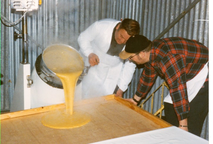 Il famoso Francesco Capecchi detto “Cecco di fico”, che nell’edizione del 1997 battè il record di “pintone”; mangiò 17 porzioni di polenta!! © Aldo Giovannini