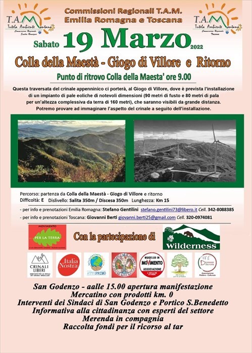 L’escursione di circa 5,30 ore sul tracciato del Sentiero Italia consentirà di vedere i luoghi in cui vorrebbero installare le pale constatando in prima persona la complessità, l’integrità ambientale, la panoramicità e la fragilità del crinale mugellano.