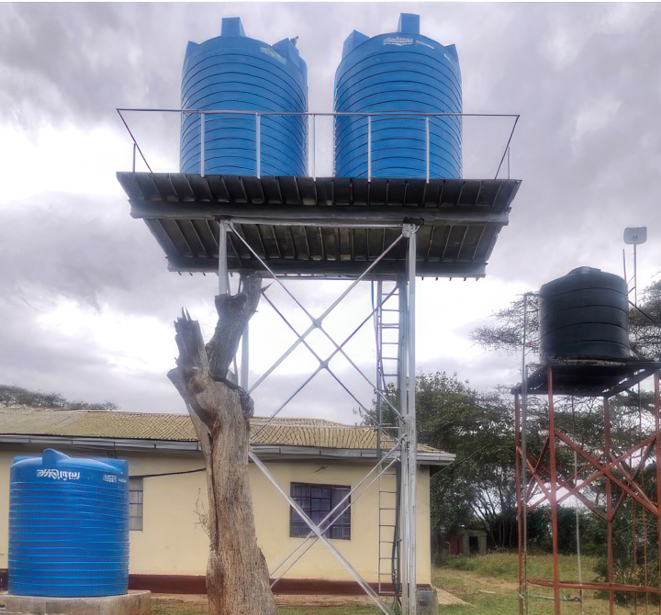 Il luogo della trivellazione presso il fiume dove è installata la pompa, l’impalcatura dei pannelli solari, la lunga canalizzazione con la deviazione e il chiosco col serbatoio per la comunità (quasi mille persone tra le più povere di Wamba) e la grande struttura con i serbatoi presso la Huruma Home. Che grande emozione! Siamo rimasti impressionati, non immaginavamo un’opera così complessa nel suo insieme. Che bellezza vederla realizzata a regola d’arte e perfettamente funzionante.