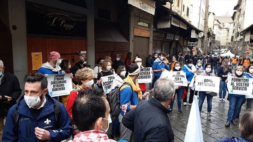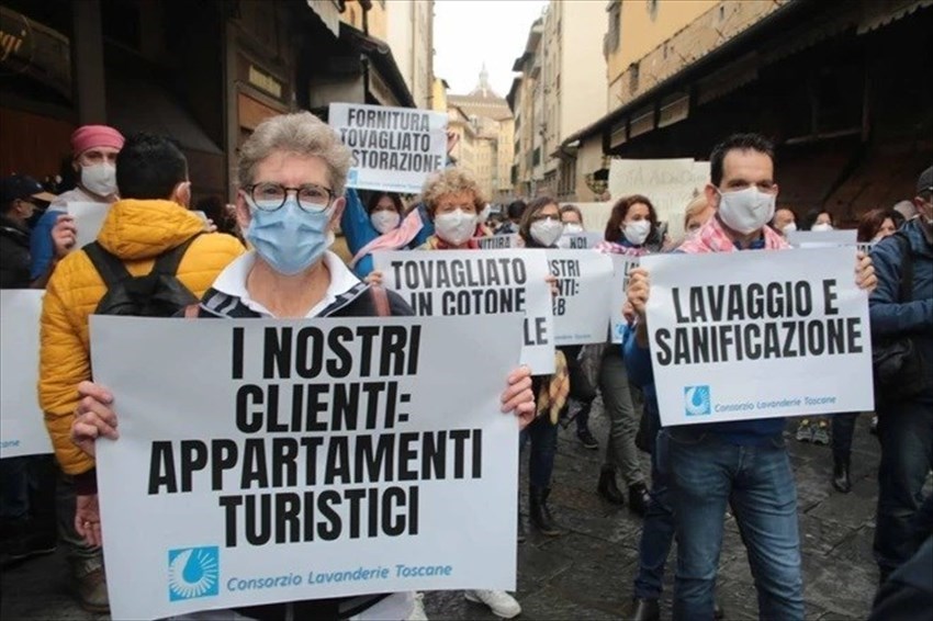 La direzione Chi.Ma Florence era presente con una delegazione dei dipendenti insieme agli altri rappresentanti del Consorzio Toscano delle Lavanderie Industriali Turismo alla manifestazione “Ponti per il Futuro” che ha visto partecipi tutti gli attori del turismo (lavanderie industriali, ristoranti, alberghi, guide turistiche, ncc, taxi, fornitori etc). Siamo tutti lavoratori, in questa crisi non c’è differenza tra dirigenza o dipendenti, ci sono solo uomini e donne che vogliono far sentire la propria voce, per esercitare il loro diritto al lavoro e chiedere aiuti per le loro aziende che ancora una volta sono state tagliate fuori. Abbiamo partecipato erché chiediamo dignità per il nostro settore, per tutti gli addetti soprattutto e per le nostre famiglie! Le lavanderie industriali sono una risorsa per il Paese e soprattutto per il turismo. Perché noi esistiamo e siamo un valore per i nostri territori.