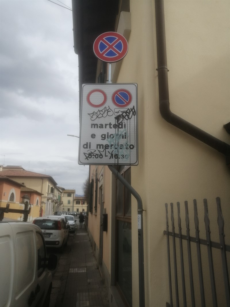 Sono rimasta veramente stupita e quindi sono andata a cercare il cartello che segnalasse il divieto di sosta permanente ed ho trovato solo il cartello, di cui allego la foto, che sotto i simboli di divieto di accesso e divieto di sosta, recitava "MARTEDI' E GIORNI DI MERCATO DALLE ORE 5.00 ALLE ORE 16". Decido quindi di andare al Comando della Polizia Municipale per chiedere spiegazioni. Mi è stato risposto che il divieto di sosta permanente era espresso dal cartello più piccolo rotondo apposto SOPRA il cartello per scritto i giorni e gli orari di divieto di sosta...