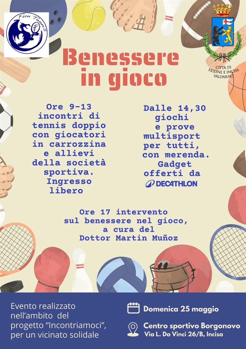 Il secondo e ultimo evento si svolgerà domenica 25 maggio presso il Centro sportivo Borgonovo di Incisa Valdarno (via Leonardo da Vinci 26/B, sede Fun Tennis), e rappresenta il recupero dell’iniziativa multisport originariamente programmata per il 13 aprile, ma annullata a causa del maltempo.